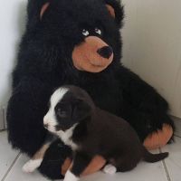 Seit die Mama fast nur noch in der Box liegt, müssen sich die Babies wohl oder übel zu ihr hinbewegen und die sichere Lieblingsecke verlassen :-) Sie sind aber ganz tapfer und mutig und verteilen sich in allen Ecken. Am liebesten aber rund um den Bär.