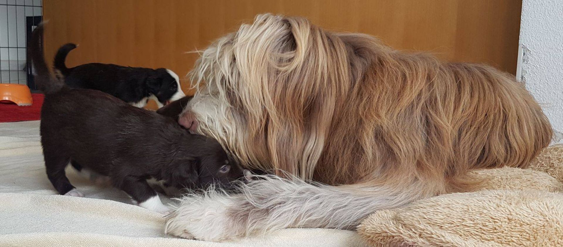 Aine ist der Meinung - Zeit für Erziehung. Es war zu witzig, da schnappt sie sich ein Spieli und legt sich auf ihre Decke. Und wartet... und wartet, bis endlich mal ein Baby vorbeigekommen ist, damit man das auch demonstrieren kann :-) Sie macht das wie alles, sehr sicher, angemessen und fair. Die Babies haben es kapiert. Zur Belohung hat sie dann am Schluss auch mit ihnen gespielt. Ich liebe sie einfach.