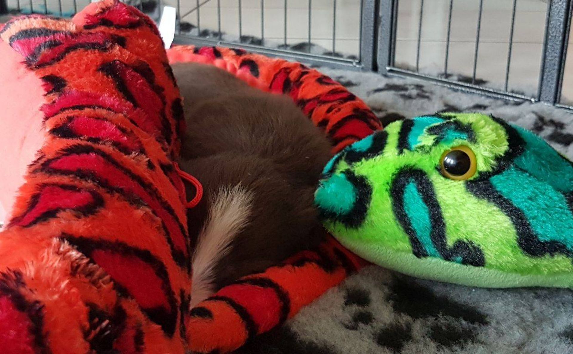 Eigentlich waren die Schlangen schon für die Wurfbox geplant. Die Babies lieben es, wenn sie sich irgendwo drankuscheln können. Nachdem aber das Kissen so gut ankam, wäre es ein bisschen voll geworden. Für den Auslauf sind die Schlangen super, weil sie den Bereich eingrenzen und den Babies dadurch Sicherheit geben. Als Stillkissen eignen sie sich aber auch gut :-)