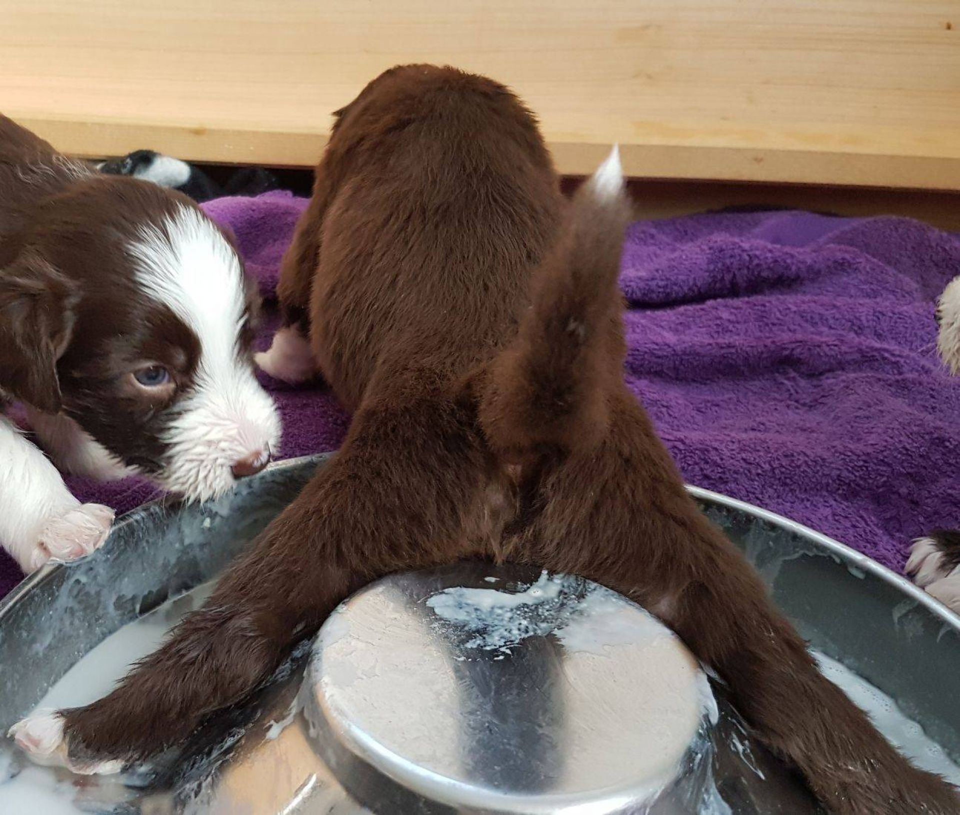 Heute gab es zum ersten Mal extern Milch. Sie fanden es solala, der Hunger treibt es halt rein. Sie waren aber dann doch sehr froh als Mama zum Nachtisch kam :-)