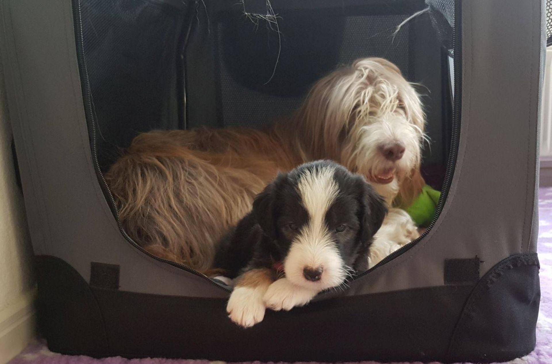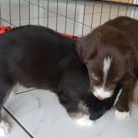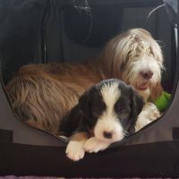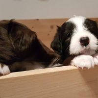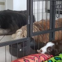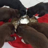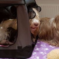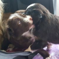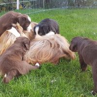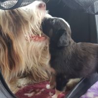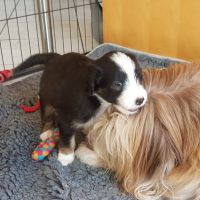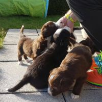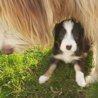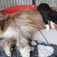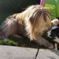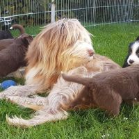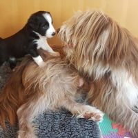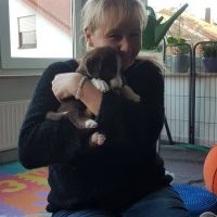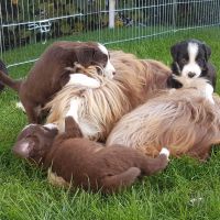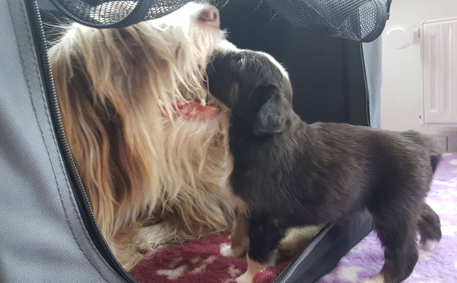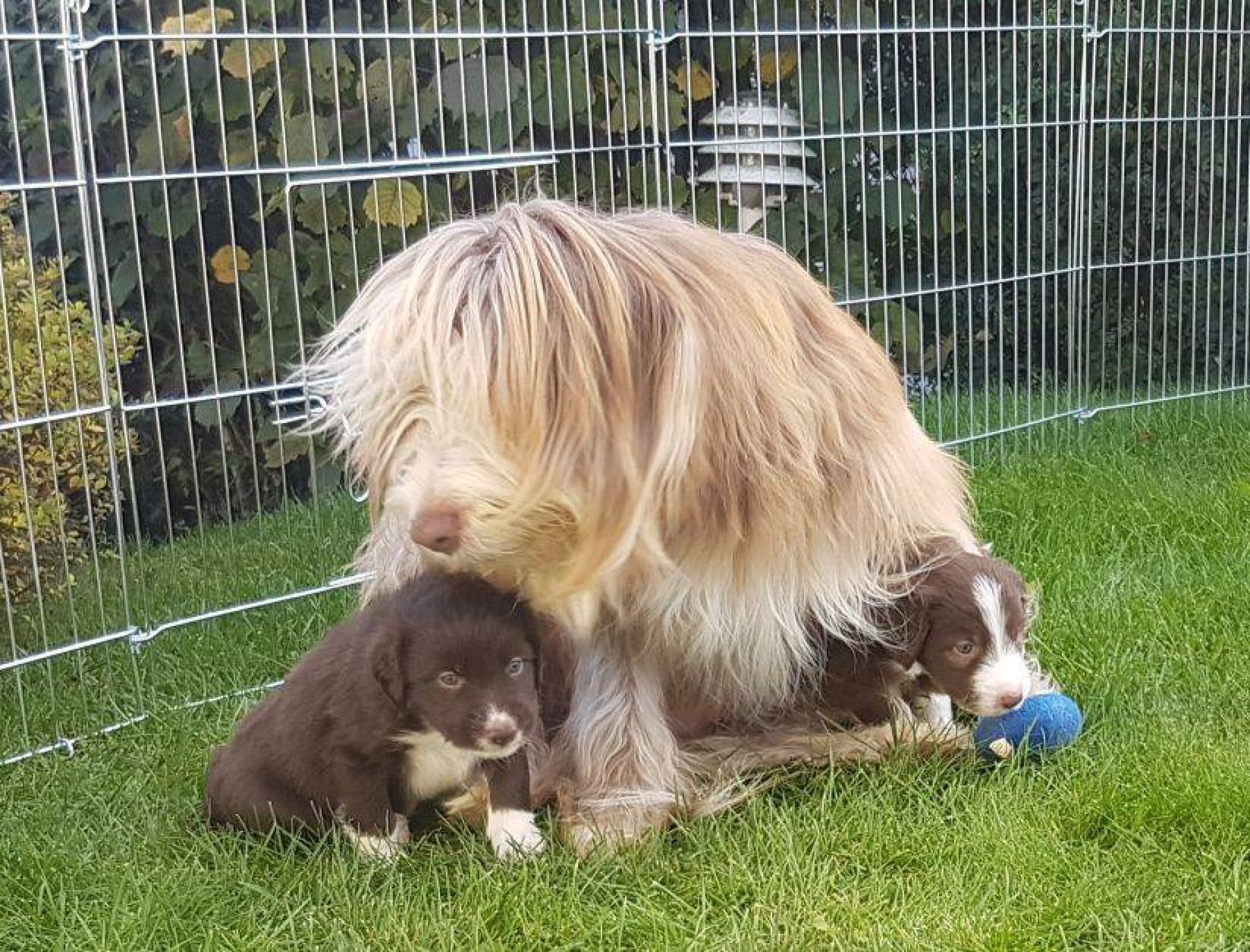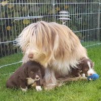 Heute war Aine´s Lieblingsbruder zu Besuch. Und wie immer, dreht sie schier durch, wenn sie ihn sieht. Sie hätte ihm sehr gerne ihre Babies vorgeführt und er hat sich auch mal kurz überreden lassen, die sich mal näher anzuschauen aber so ganz geheuer waren die ihm nicht. Die hatten aber auch wirklich gar keinen Respekt vor dem Riesenkerl und sind fröhlich auf ihn zugewackelt. Er zog es dann vor, sich das lieber mit etwas Abstand anzuschauen :-)