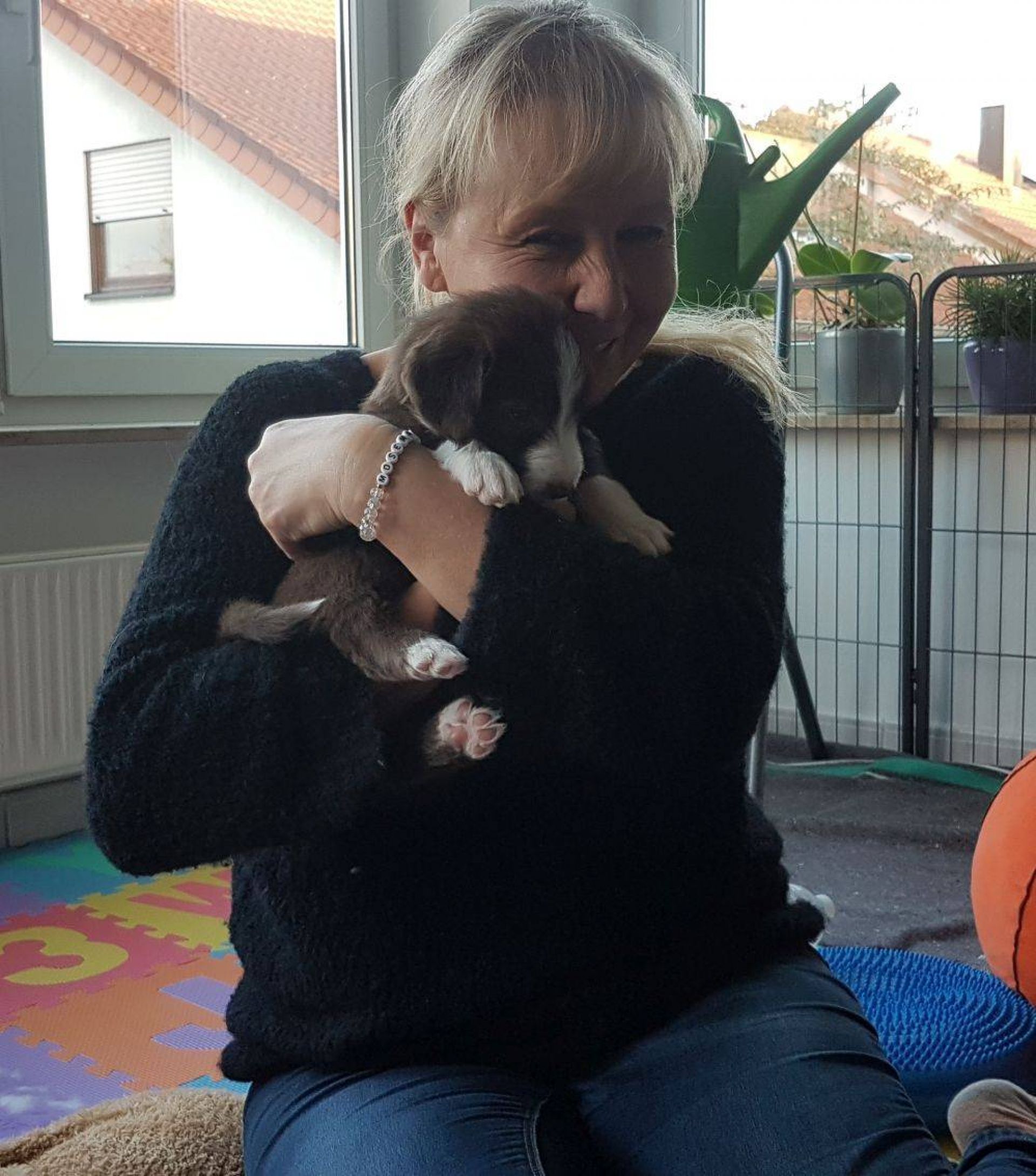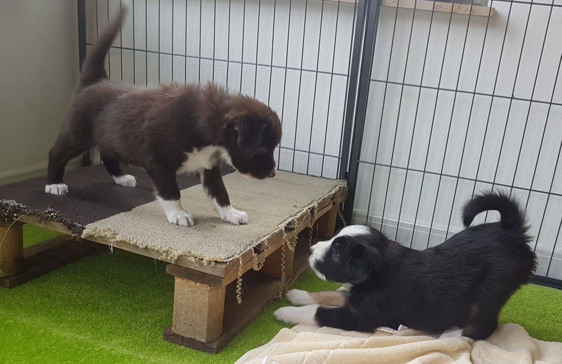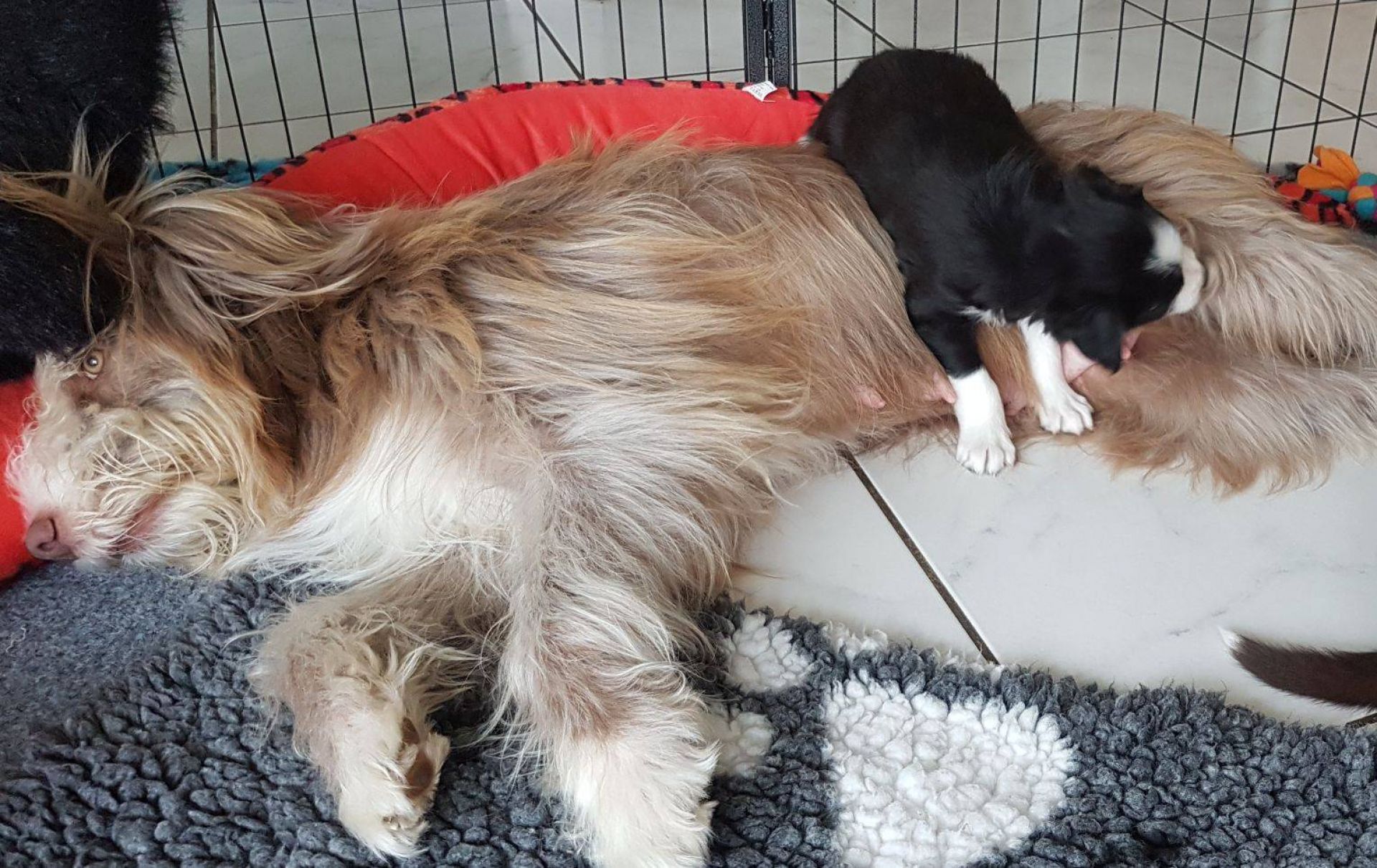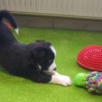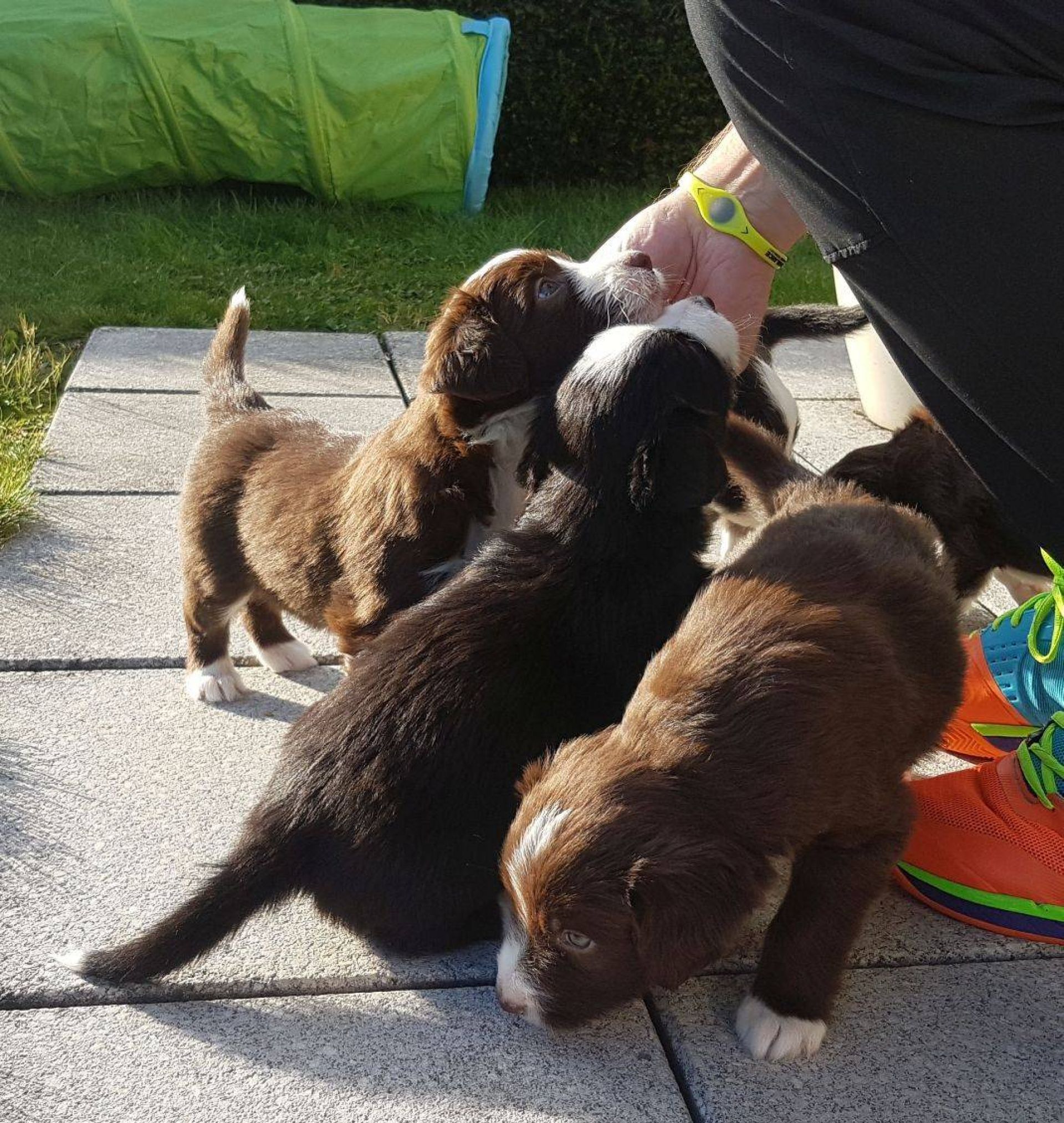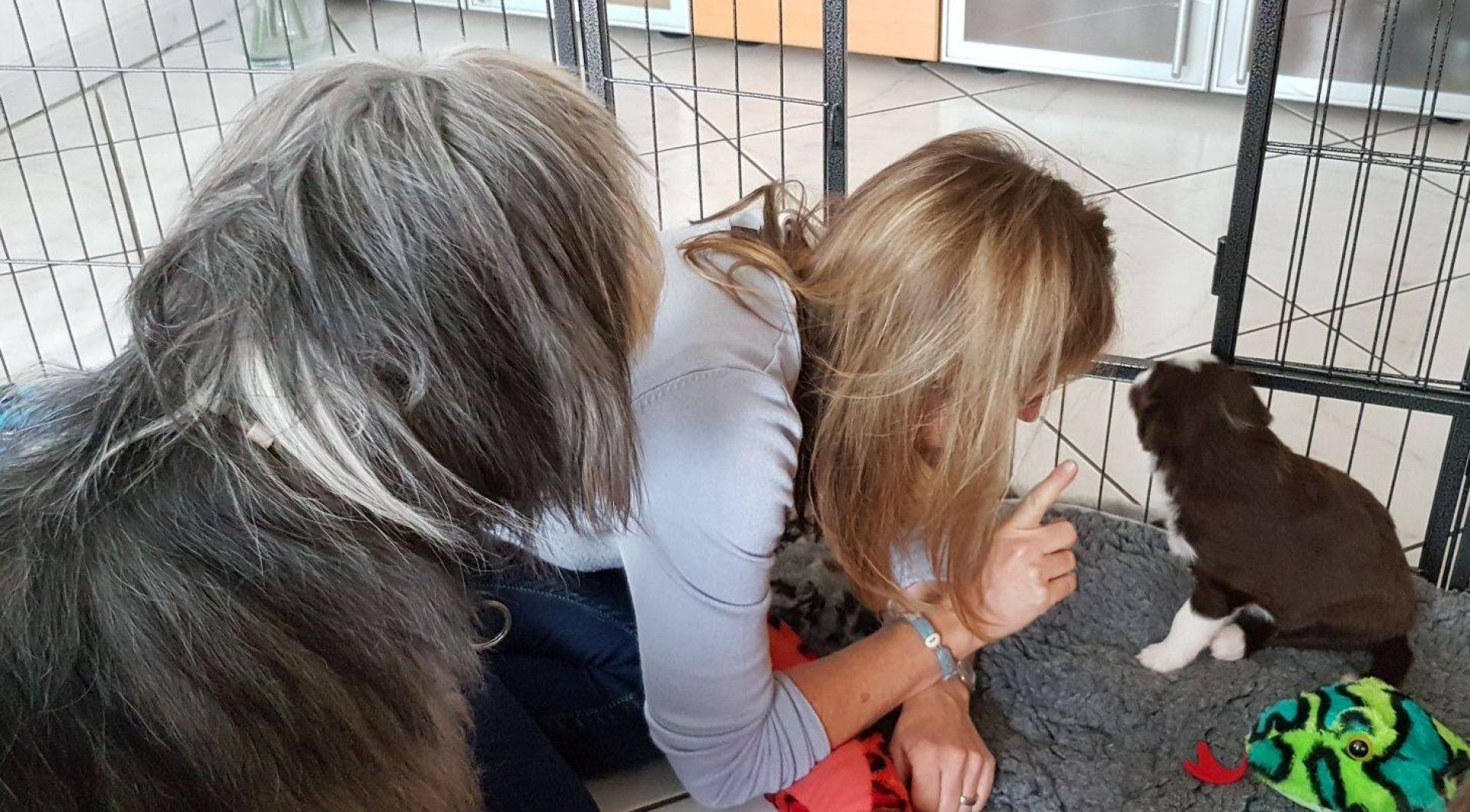 Die Babies werden ins Spielen eingeführt. Wobei sie das ja untereinander echt gut können. Die Mama zeigt ihnen aber, dass es dabei auch Regeln gibt. Sie fängt an und beendet es auch und das zeigt sie ihnen auch deutlich. Plötzlich ist nämlich das Spieli nicht mehr zur freien Verfügung sondern Aine beansprucht es für sich. Es ist wirklich spannend, wie unterschiedlich sich die Welpis aus der Situation heraus manövrieren.