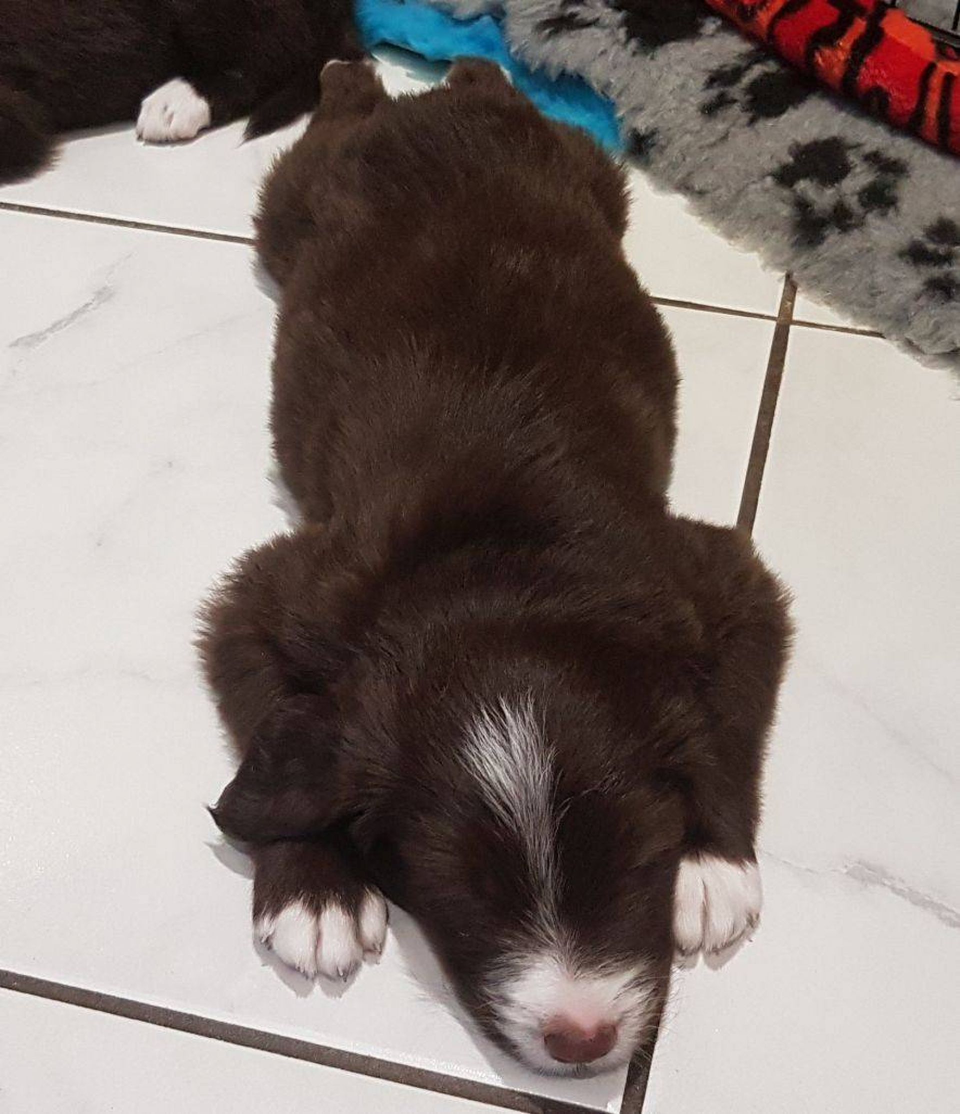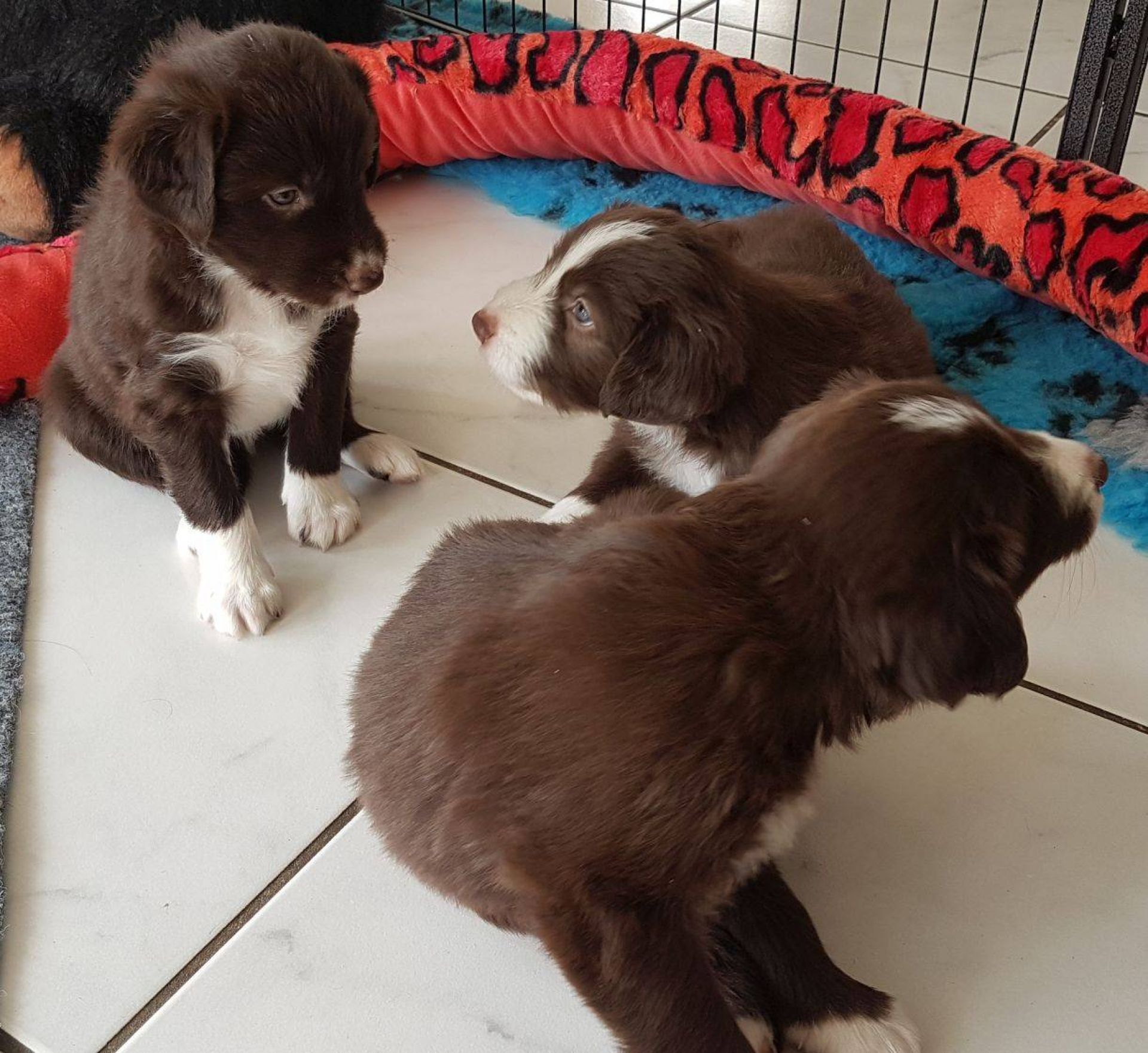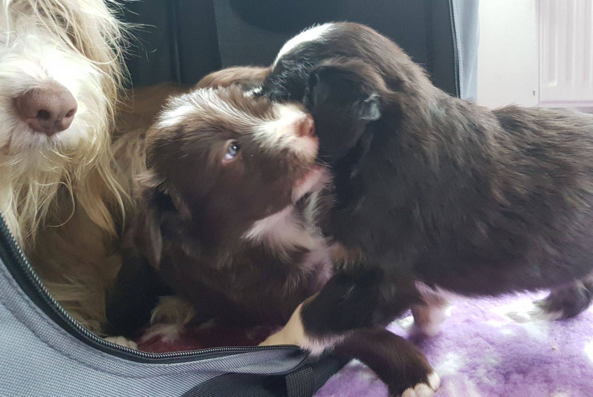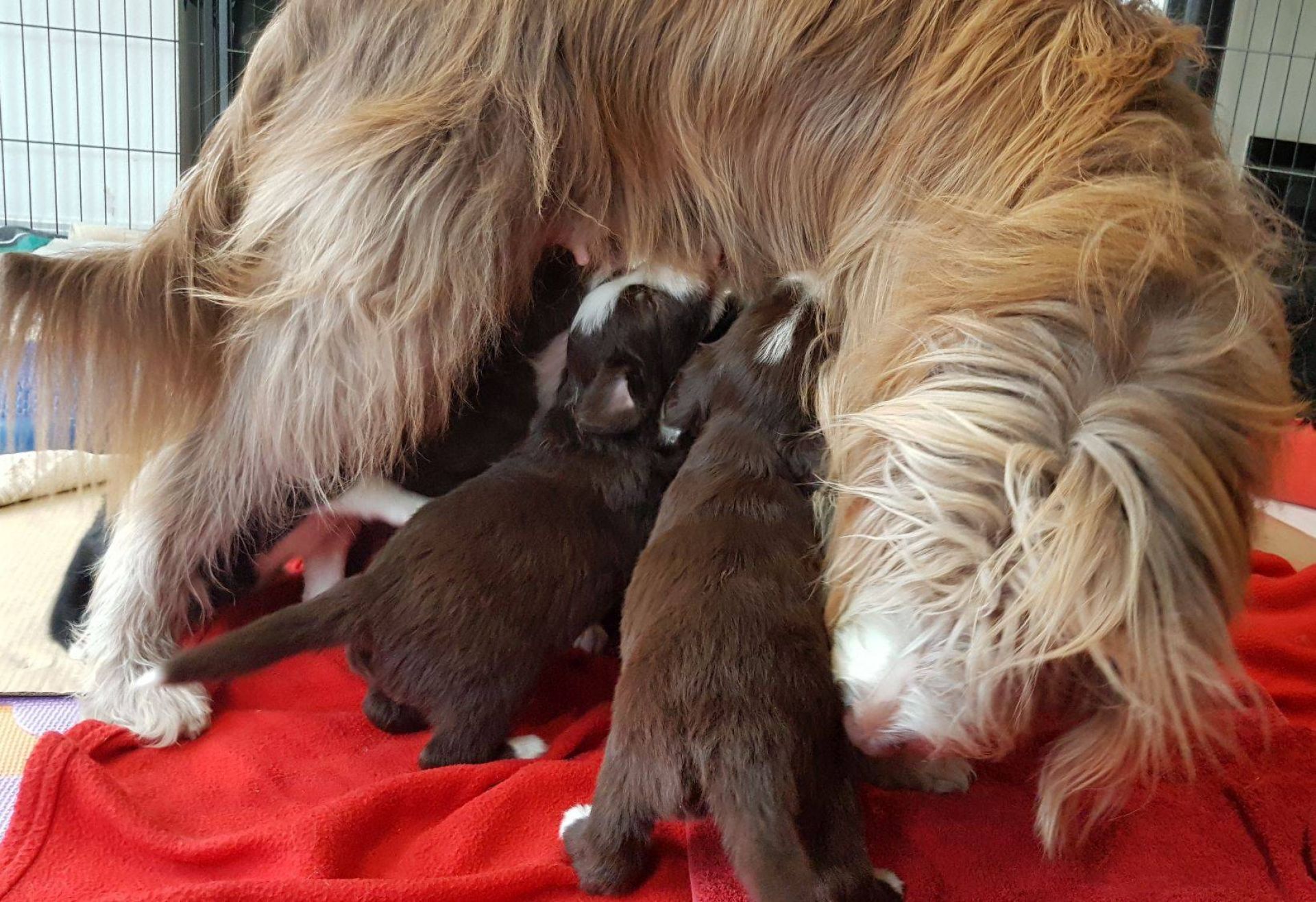 Die Babies werden ins Spielen eingeführt. Wobei sie das ja untereinander echt gut können. Die Mama zeigt ihnen aber, dass es dabei auch Regeln gibt. Sie fängt an und beendet es auch und das zeigt sie ihnen auch deutlich. Plötzlich ist nämlich das Spieli nicht mehr zur freien Verfügung sondern Aine beansprucht es für sich. Es ist wirklich spannend, wie unterschiedlich sich die Welpis aus der Situation heraus manövrieren.