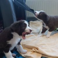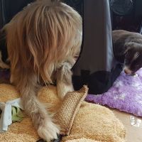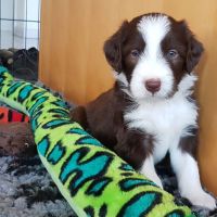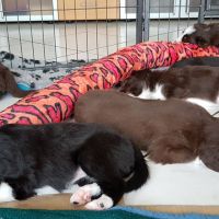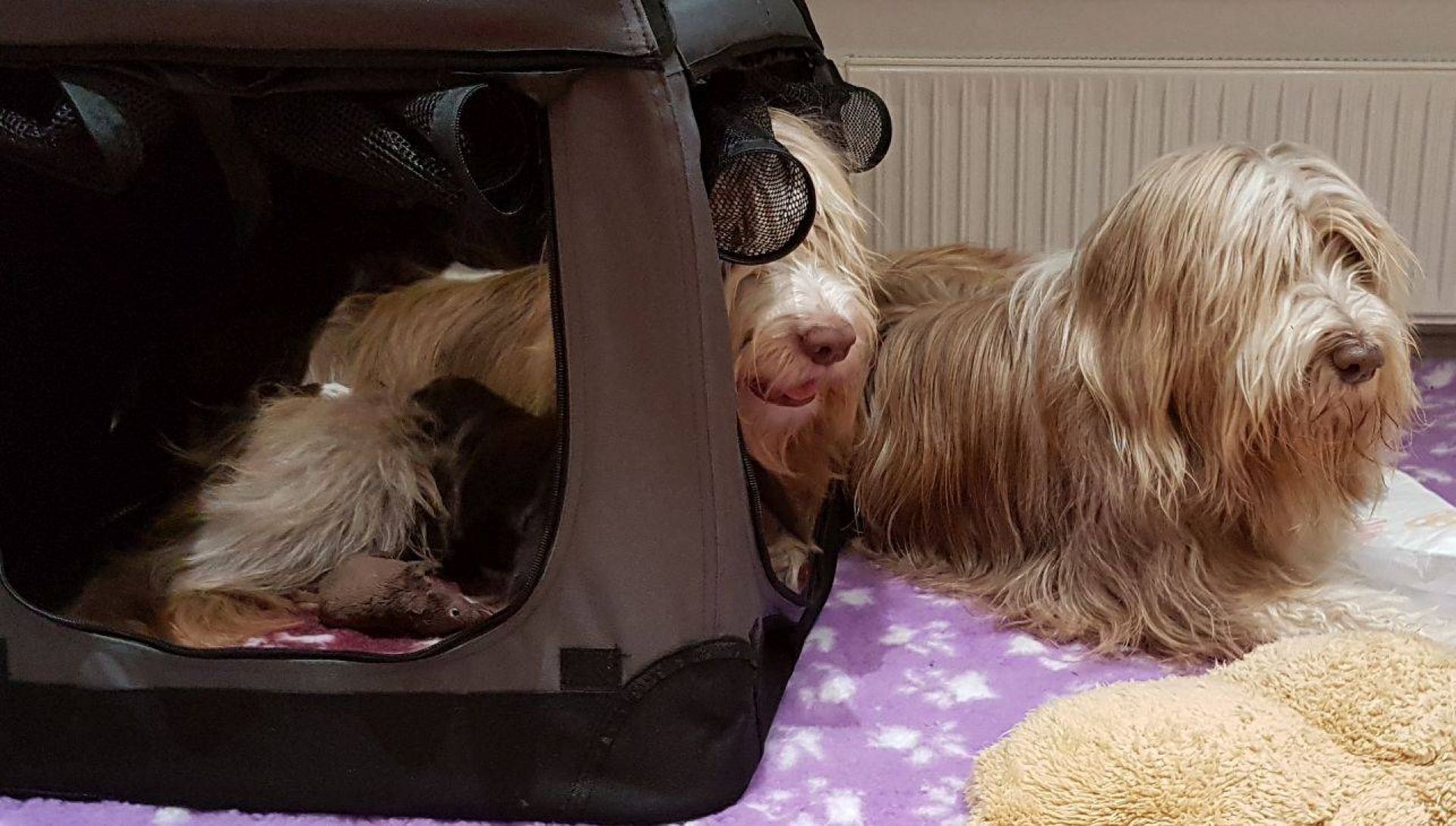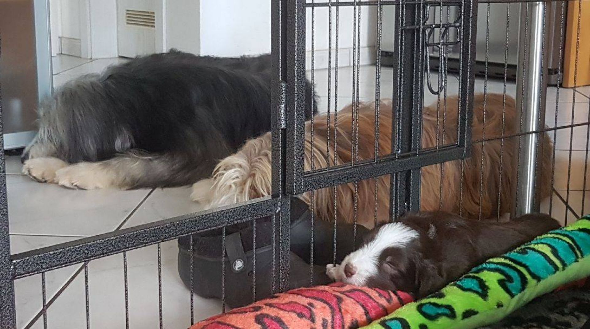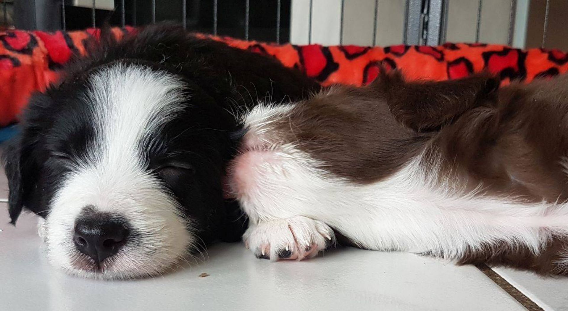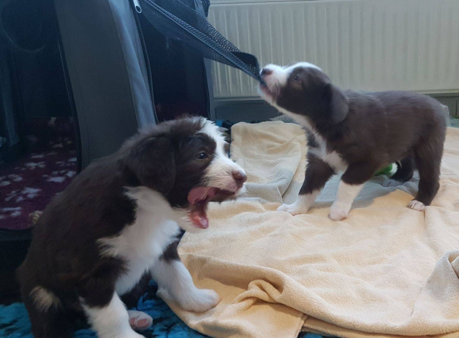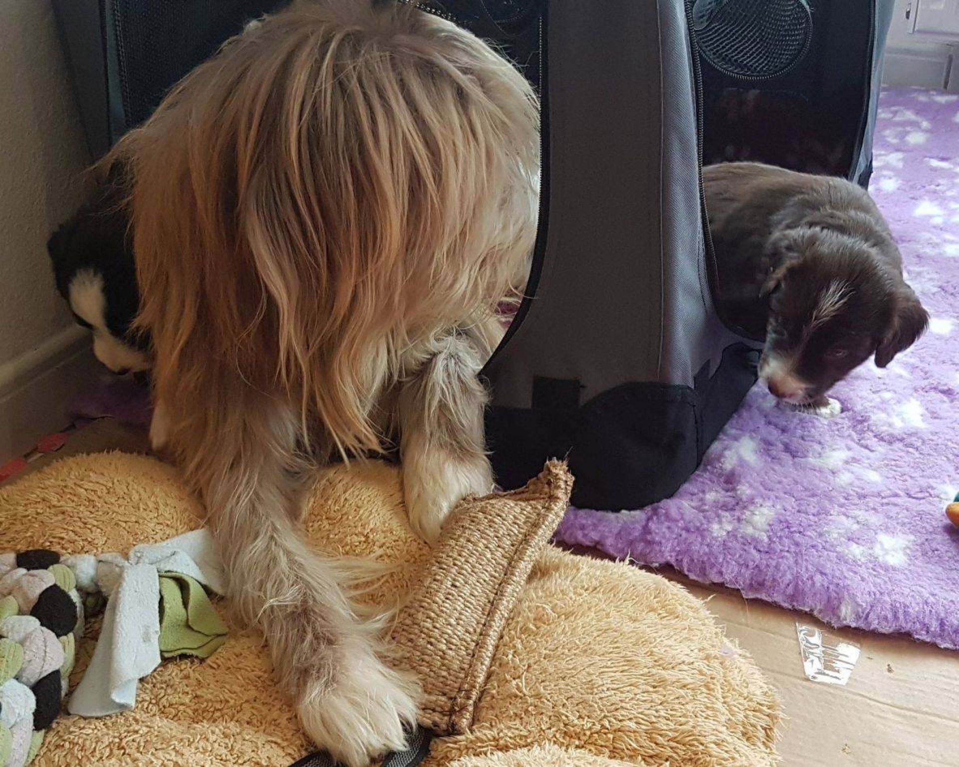 Die Babies werden ins Spielen eingeführt. Wobei sie das ja untereinander echt gut können. Die Mama zeigt ihnen aber, dass es dabei auch Regeln gibt. Sie fängt an und beendet es auch und das zeigt sie ihnen auch deutlich. Plötzlich ist nämlich das Spieli nicht mehr zur freien Verfügung sondern Aine beansprucht es für sich. Es ist wirklich spannend, wie unterschiedlich sich die Welpis aus der Situation heraus manövrieren.