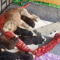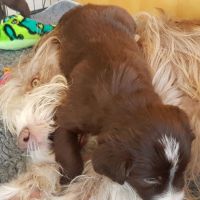 Die Babies schlafen nachts noch in der Wurfbox, weil die Mami ihre Kinder nicht alleine lassen mag. Warum, sieht man ja im Video. So geht das mindestens eine viertel Stunde lang. Die Babies werden immer fitter und ich krieg immer mehr Falten, weil ich nicht zum Schlafen komme vor lauter Verzückung :-)