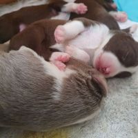 Blaze verlässt seit heute die Wurfbox freiwillig. Sie liegt zwar immer noch gerne 1-2 Stunden bei ihren Babies aber dann reicht es auch. Nachts weckt sie mich pünktlich alle 1,5-2 Stunden, wenn sie der Meinung ist, jetzt muss wieder gesäugt werden...denn, ich muss mit :-) Aber ich mache das gerne, dann kann sie total entspannen. Schlaf wird eh überbewertet.