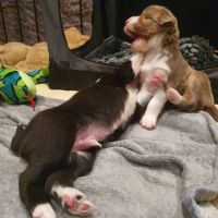 Die Babies gehen ganz brav auf die Welpentoilette. Zumindest wenn sie Zeit haben :-) Beim Spielen, wenn Mama kommt oder auch wenn es was zu essen gibt, dann vergessen sie es auch schon mal. Aber das Meiste wird brav auf der Toilette verrichtet. Echt erstaunlich, wie schnell sie das kapiert haben. Nur wenn Mama da ist, klappt es nicht so ganz, weil die Welpis gar nicht dazu kommen. Blaze ist nämlich immer noch der Meinung, das ist ihr Job :-)