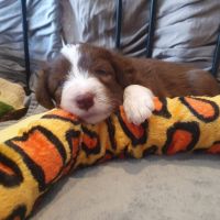 Die Babies schlafen nach wie vor im Welpenzimmer. Da Blaze nachts nicht mehr säugt, bekommen sie ihre letzte Mahlzeit gegen 21:30 Uhr mit anschließendem Nachtisch bei der Mama. Kurz darauf fallen sie in den Tiefschlaf. Wir tragen sie dann unter den wachsamen Augen der Mama in ihre Welpenkiste. So gewöhnen sie sich schon an einen Rhytmus und schlafen tatsächlich bis 06:00 Uhr morgens durch. Und ich kann in Ruhe das Schlachtfeld im Auslauf putzen :-)